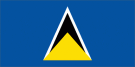 國旗:呈橫長方形,長與寬之比為2∶1。旗地為藍色,中間的三角形圖案由白、黑、黃色圖形構成,為一個帶白邊的黑色箭頭和一個黃色等腰三角形。藍色代表圣盧西亞周圍的海洋、黑色代表火山,黑色和白邊又代表該國的兩個主要民族,黃色象征該島國的海灘和陽光。白、黑、黃三色構成的三角形,象征圣盧西亞這個島國。