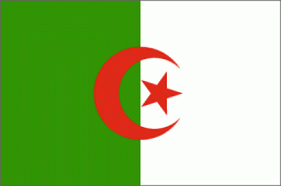國旗:長方形,長寬之比為3:2。旗面由左綠、右白兩個相等的豎長方形組成,中央有一顆稍微傾斜的紅色五角星和一彎紅色新月。綠色象征未來的希望,白色表示純潔與和平,紅色表示獻身精神。阿爾及利亞以伊斯蘭教為國教,五角星和新月是穆斯林的象征。