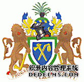 國徽:主體為盾形。淺藍色的盾面上交叉著一把黃色的“羅卡”斧和一把“曼丁哥”鋤,盾形上端是頭盔和棕仁果樹。兩側各有一頭雄獅,分別抓著斧和鋤。下面綬帶上用英文寫著“進步、和平、繁榮”。