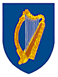 國徽:藍色盾徽。盾面上繪有金黃色的豎琴。藍色象征大海和天空,豎琴為愛爾蘭人民喜愛的“天使之琴”。