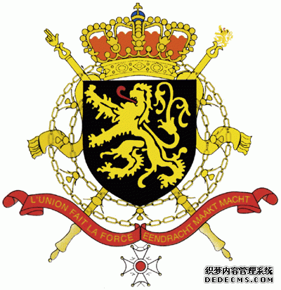 國徽:盾形。盾面上有一頭獅子。盾徽背后交叉的君王節杖象征王權。上端為一頂王冠,飾環之下懸掛著一枚利奧波德(比第一代君主)勛章。下端的綬帶上寫著“團結就是力量”。