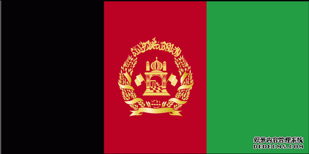 國旗:長方形,長寬之比為3:2。旗面自左至右由黑、紅、綠三個(gè)豎長方形組成。中央是金黃色的國徽?qǐng)D案。2002年2月5日,阿富汗采用新國旗。新國旗是根據(jù)1964年的阿富汗憲法設(shè)計(jì)的,由黑、紅、綠三色長條圖案和阿富汗國徽構(gòu)成。