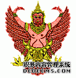 國徽: 即皇徽,圖案是一只大鵬鳥,鳥背上蹲坐著那萊王。傳說中大鵬鳥是一種神鳥,那萊王為守護神。整個圖案帶有宗教含義和神秘色彩,它象征著虔誠和敬意。
