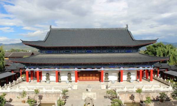 導讀:麗江游記:6.1木府 在麗江的最后一站,選在了位于古城內的木府,這個富含了歷史和文化的地方,因為是在原址上重建,所以都是新的。 木府前的牌坊 木府的大門 木府大門的背面 正殿