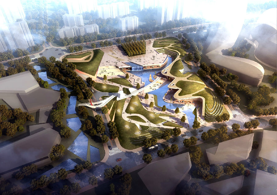 歡樂廣場是整個歡樂城的交通樞紐和門戶,占地4萬平米,總投資4.1億元,地下設兩層大型停車庫,與朗豪度假酒店、洲際假日酒店、商業街區域車庫連成一個整體,可提供900多個車位(含39個大巴車位)。項目由美國SWA景觀設計公司設計,將以立體植被、疊層水系、主題廣場等打造一個日常休閑、節日慶典的公共區域。