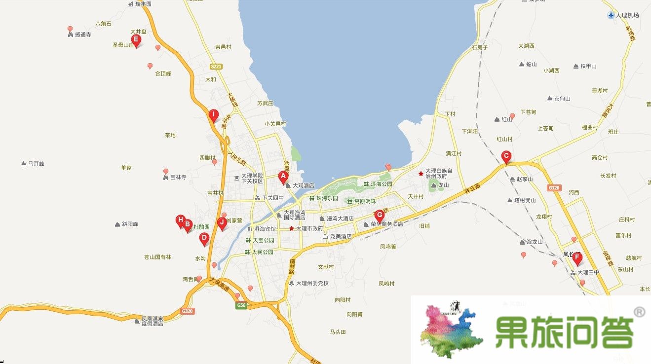 文昌宮(大理逸龍濱海酒店東)-----文昌宮俗名龍潭殿,始建于漢代,最初為當地土著民族祭龍的龍王廟。 以下是大理寺廟分布圖: