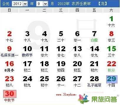 9月30日至10月7日放假調(diào)休,共8天。9月29日(星期六)上班。
