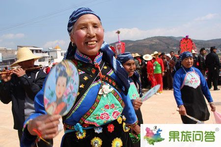 彌渡是花燈之鄉,花燈是漢族民間的娛樂活動,流行于云南,貴州兩省,以及四川,湖南等地。過去上元節時,人們載歌載舞鬧元宵,男女手持巾,扇雙雙起舞,踏歌和樂,稱為跳花燈。近現代花燈不只限于歌舞形式,并發展成為一種劇種,演出是手持折扇和手帕,靈活運用各種步伐, 手勢以及耍扇,耍帕的技法,形成清新活潑的藝術特色。